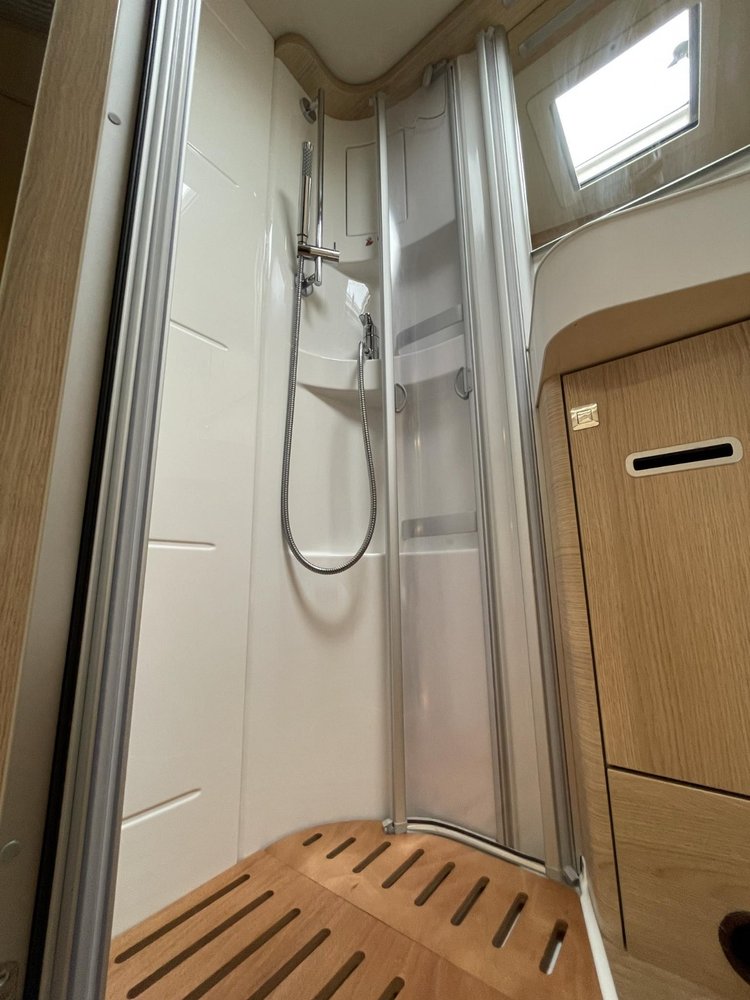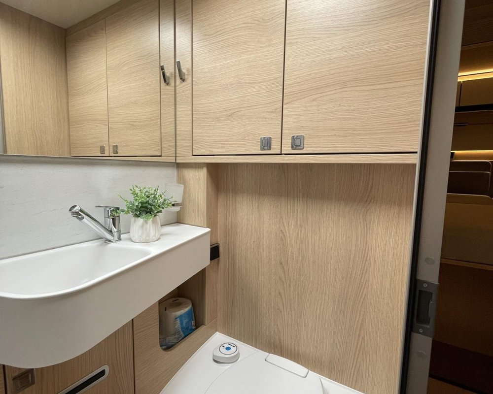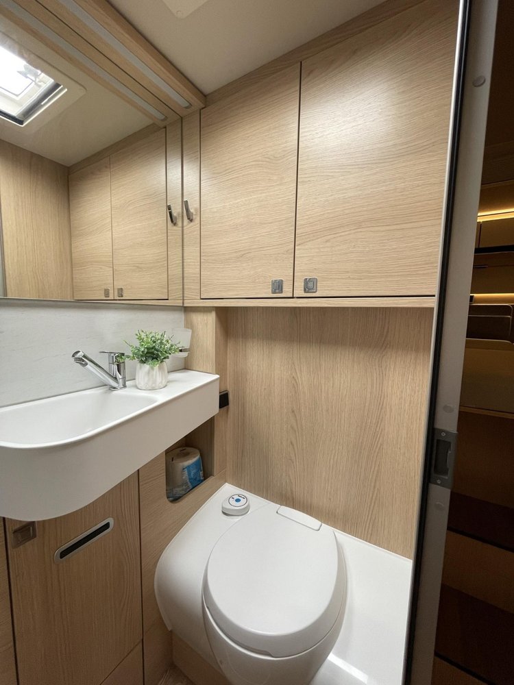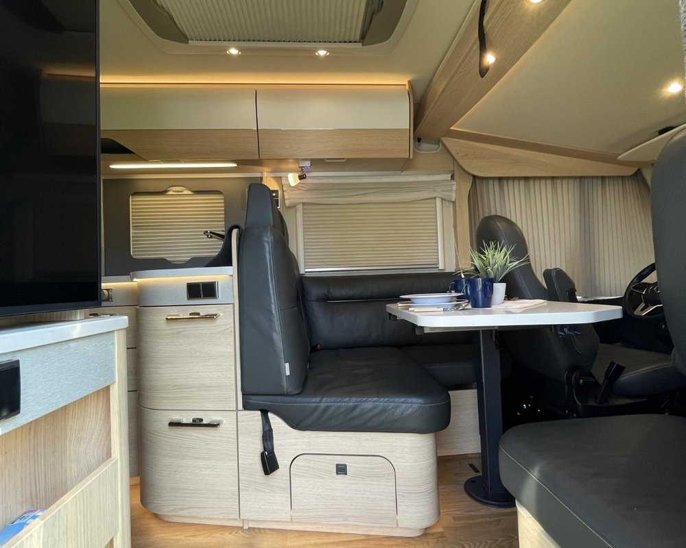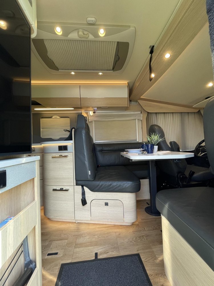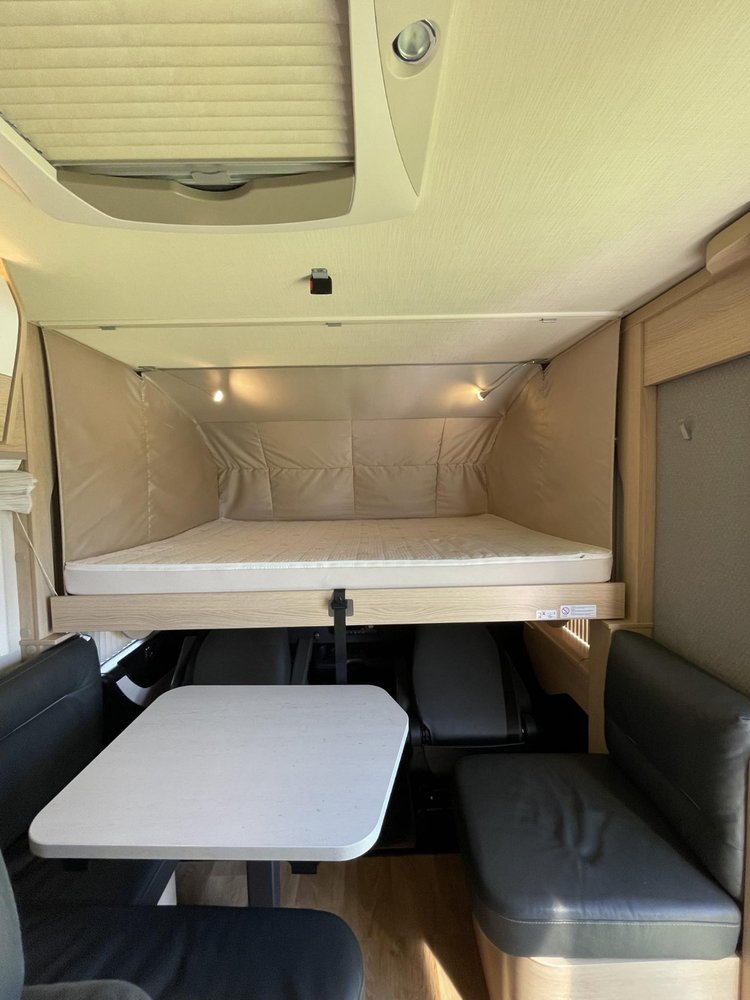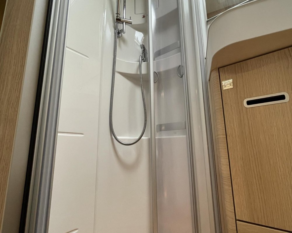 K dispozici máte klimatizaci, topení, lednici s mrazákem, kuchyňský kout, sprchu i WC, ale také venkovní markýzu s posezením, televizi, kempingový nábytek a další výbavu pro maximální pohodlí na cestách. S velkou nádrží na vodu (180 l) a parkovací kamerou zvládnete i delší pobyty mimo kempy.
