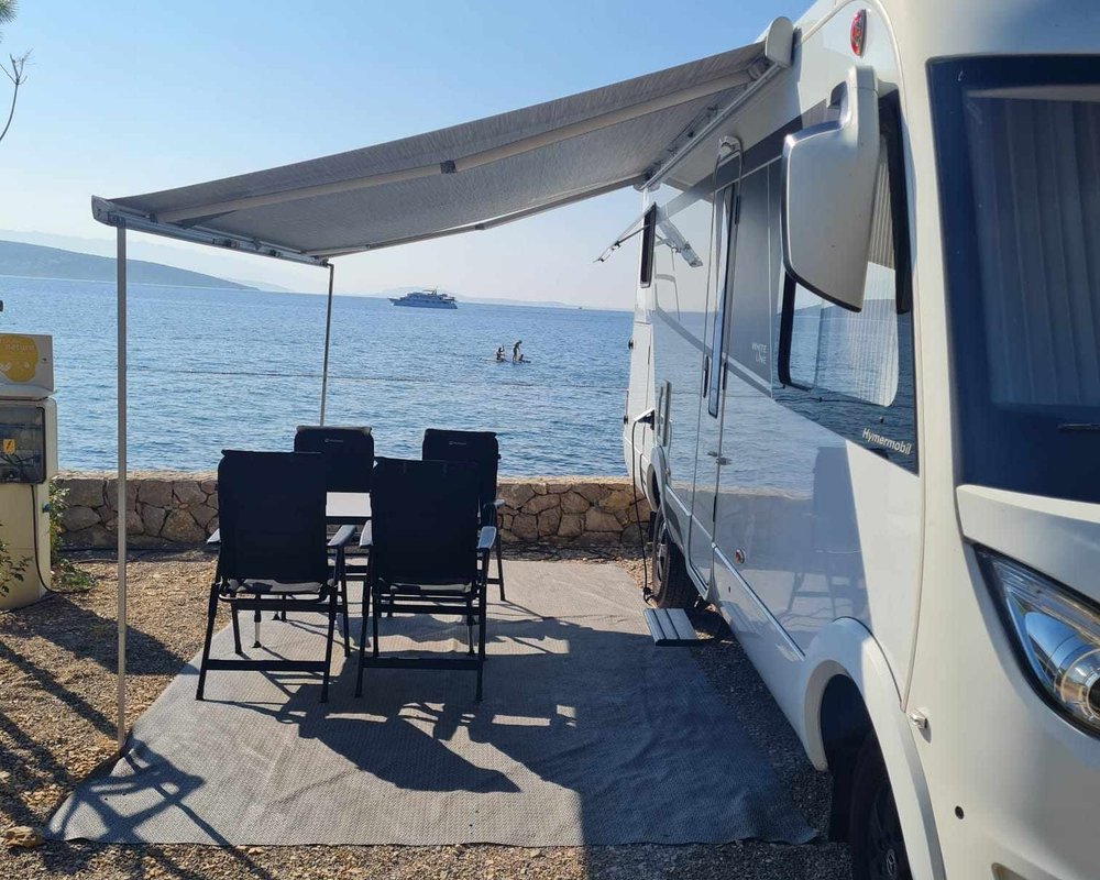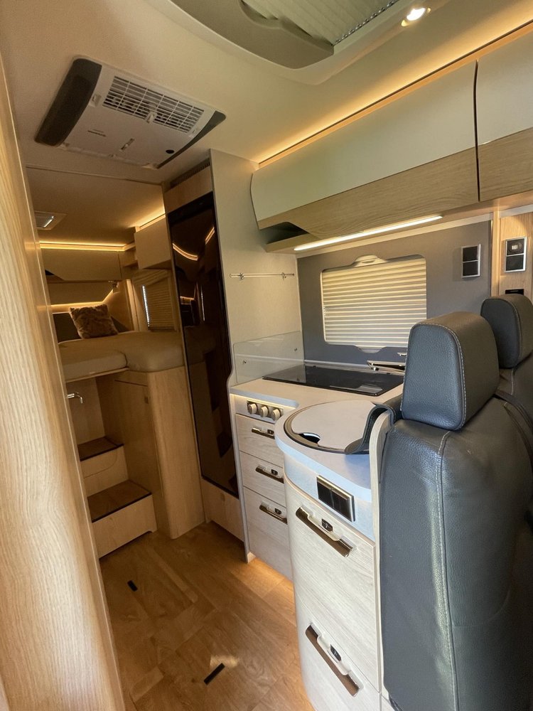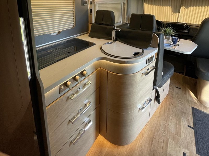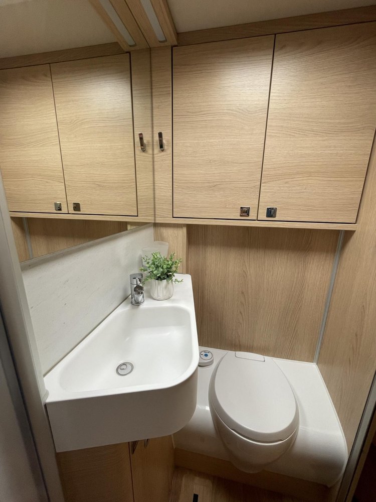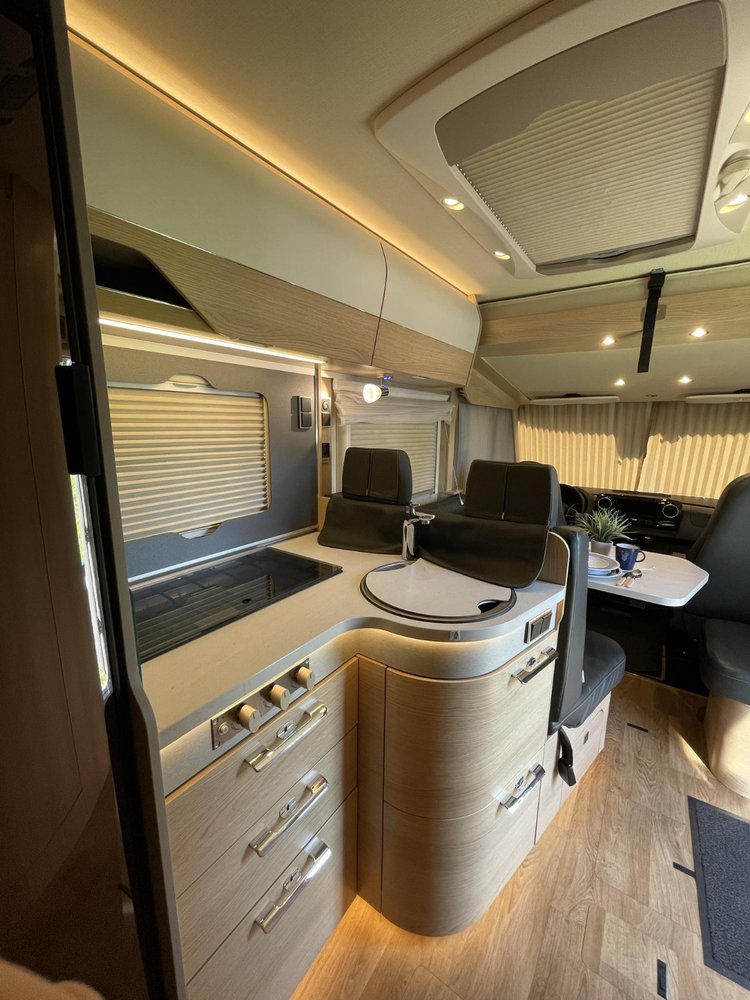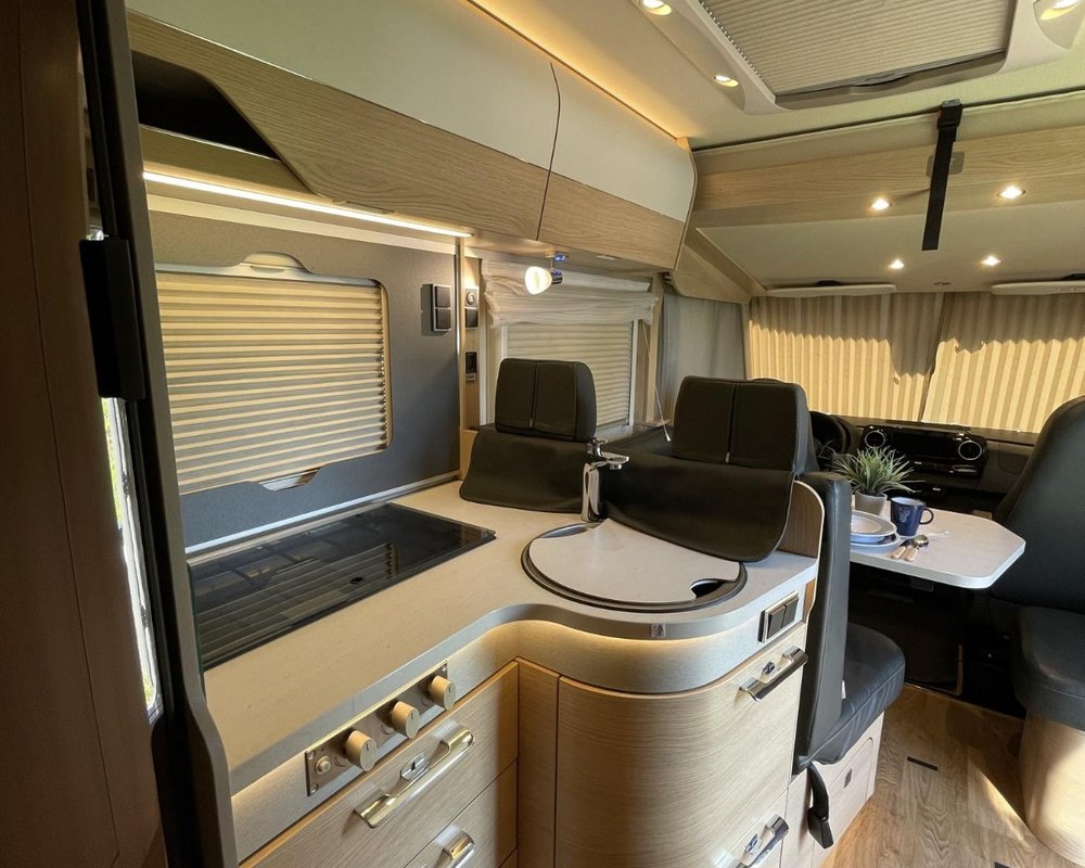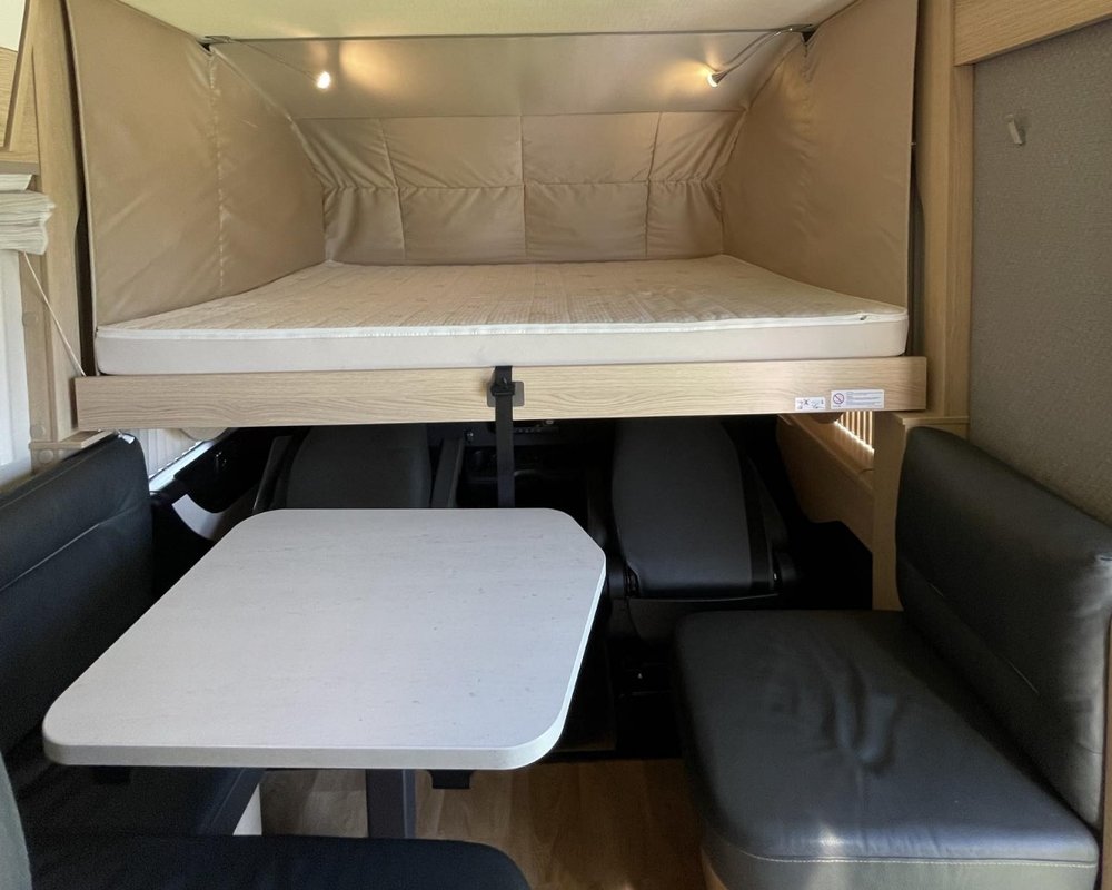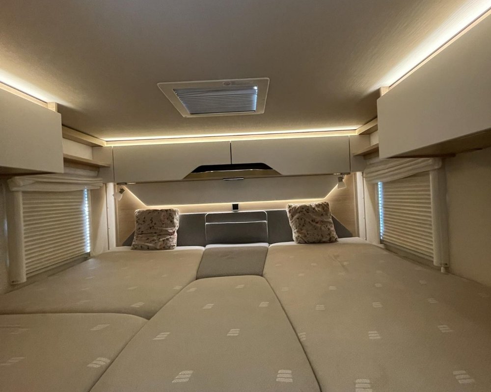 K dispozici máte klimatizaci, topení, lednici s mrazákem, kuchyňský kout, sprchu i WC, ale také venkovní markýzu s posezením, televizi, kempingový nábytek a další výbavu pro maximální pohodlí na cestách. S velkou nádrží na vodu (180 l) a parkovací kamerou zvládnete i delší pobyty mimo kempy.